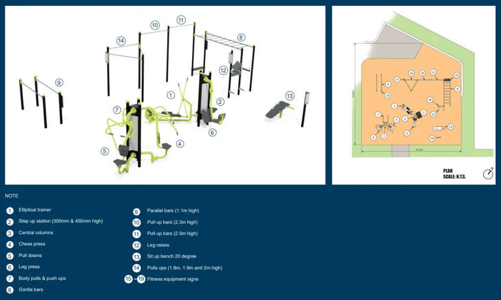 Residents supported relocating the gym to a more open and accessible area near the skate park. The consultation reflected local interest in inclusive recreation spaces and durable fitness infrastructure.