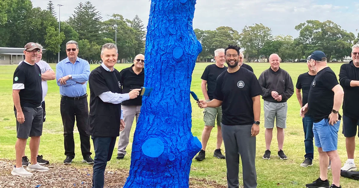 A dead tree at Nagle Park in Maroubra has been painted blue as part of a national mental health awareness initiative involving local community members.