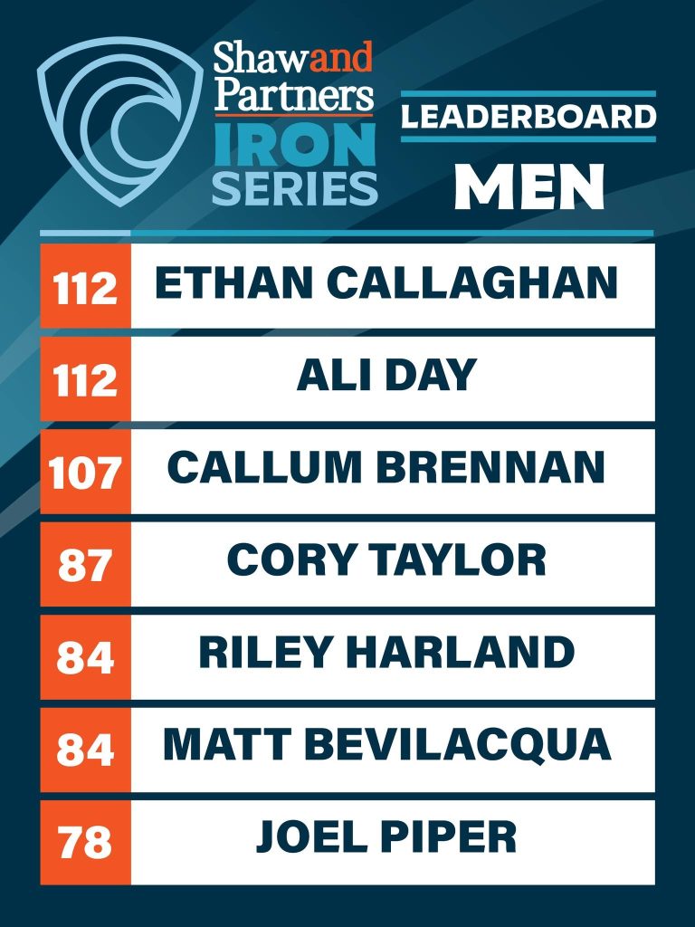 The local beach’s washing machine-like surf proved the perfect testing ground for 19-year-old rising star Ethan Callaghan to claim his second series win of the season, drawing level with his childhood hero Ali Day on 112 points with just two rounds remaining.